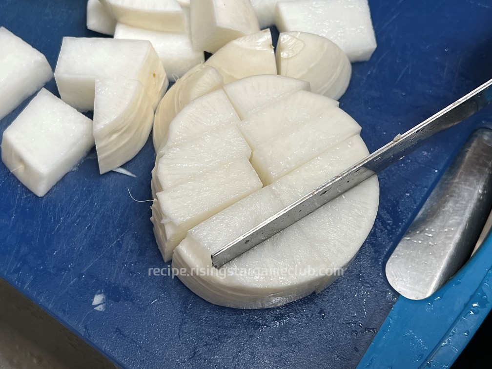 - 바람 안든 무로 잘 골라주세요. 좋은 식재료를 써야 맛있는 음식이 나오는 것 같아요. 무는 8월 중순이나 하순에 파종해서 11월에 수확하는 가을무가 있고요. 3, 4월에 파종하여 5, 6월에 수확하는 봄무가 있고, 5, 6월에 파종하여 7, 8월에 수확하는 여름무가 있다고 하네요. 가을 무가 살이 단단하고 달고 시원하고 제일 맛있다고 하시네요. 설명에는 없지만 이번에 사용한 무는 월동 제주도 무를 사용했다고 하시네요.