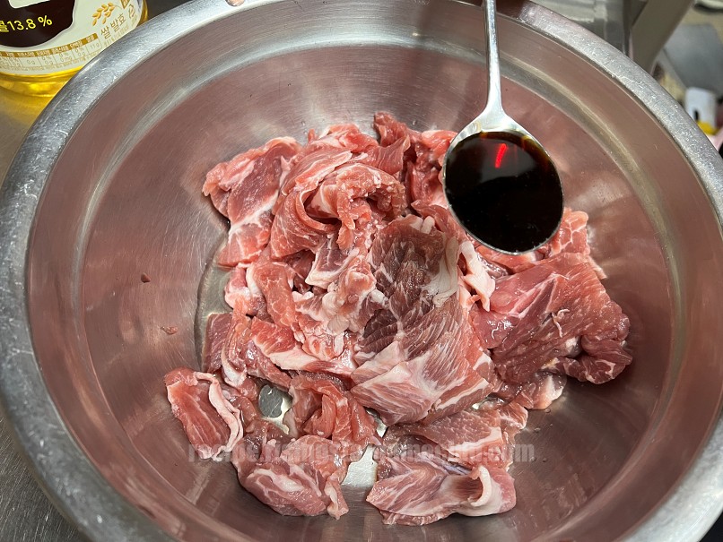 - 돼지고기는 삼겹살로 구매하시면 좋긴 하지만 가격이 많이 비싸니까요. 뒷다리살에 기름이 살짝 있는 고기로 구매하시면 가격도 저렴하고 좋습니다.