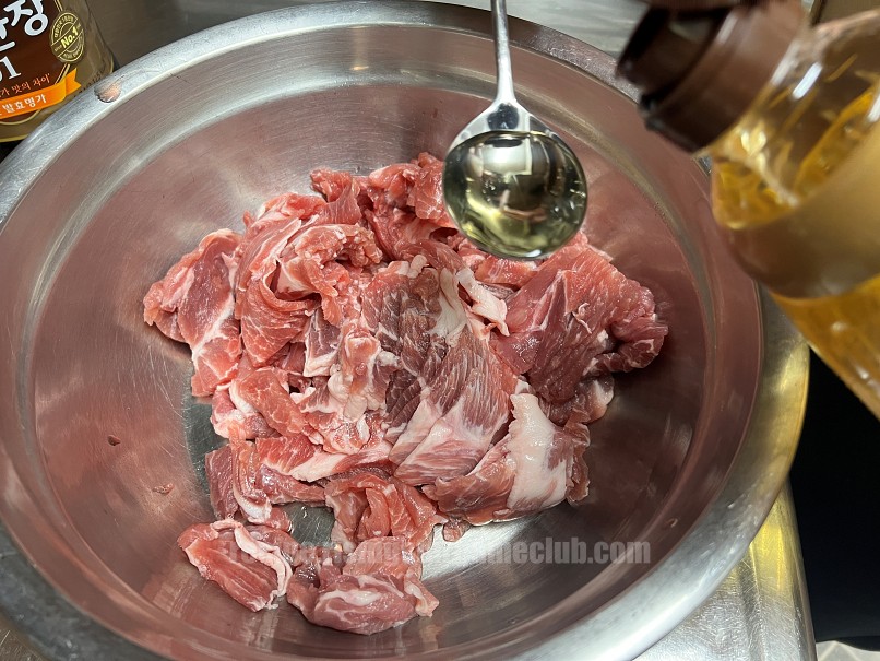 - 돼지고기는 삼겹살로 구매하시면 좋긴 하지만 가격이 많이 비싸니까요. 뒷다리살에 기름이 살짝 있는 고기로 구매하시면 가격도 저렴하고 좋습니다.