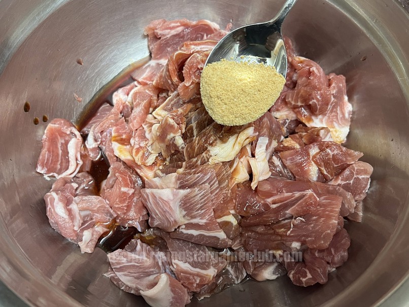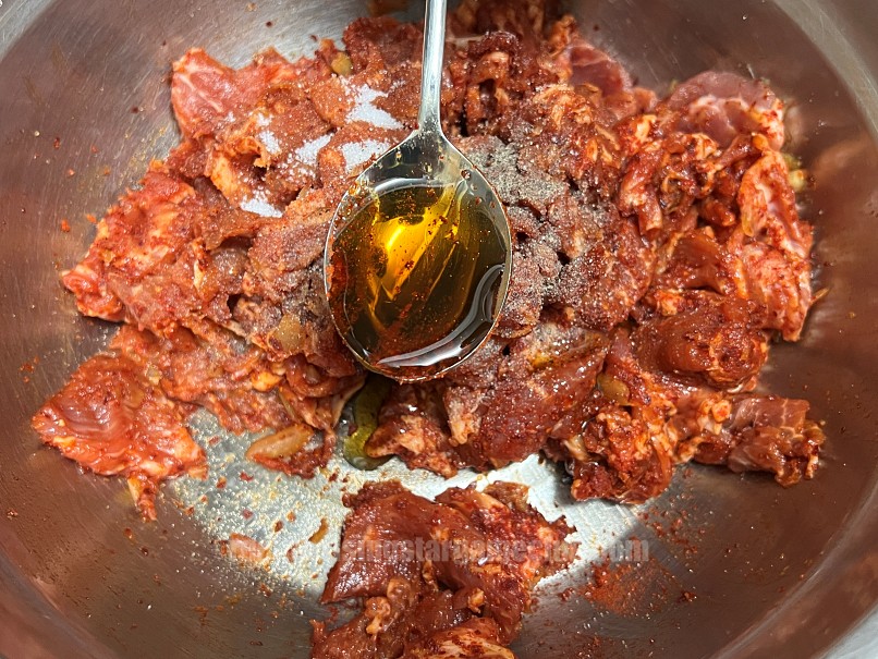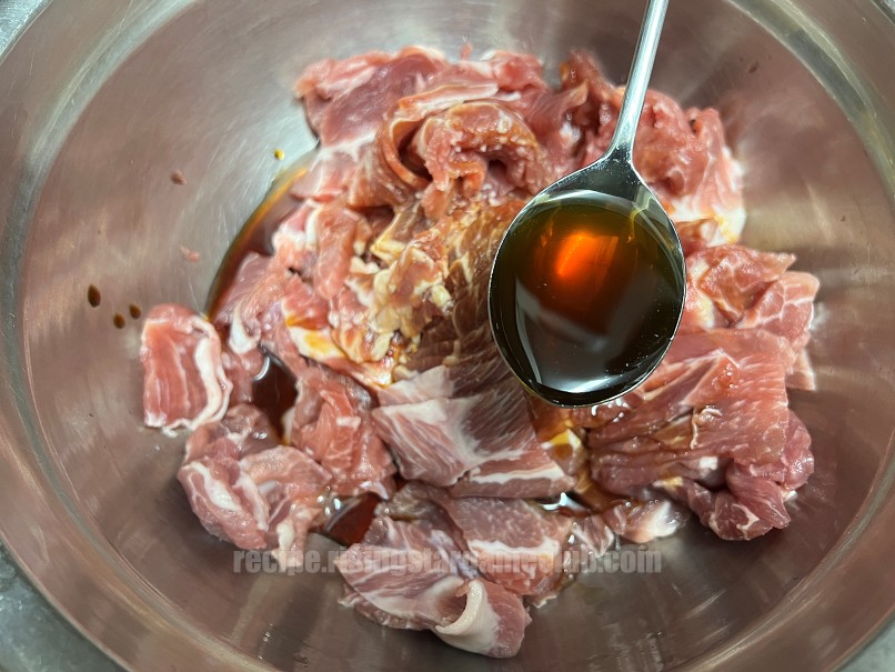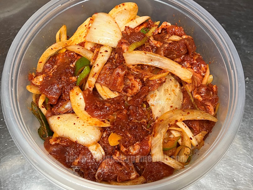 미림 2T, 매실액 1T, 고춧가루 5T, 설탕 1/2T, 소고기 다시다 1/2T, 후추 1Ts, 참기름 1T, 굴소스 1T, 식용유 1T